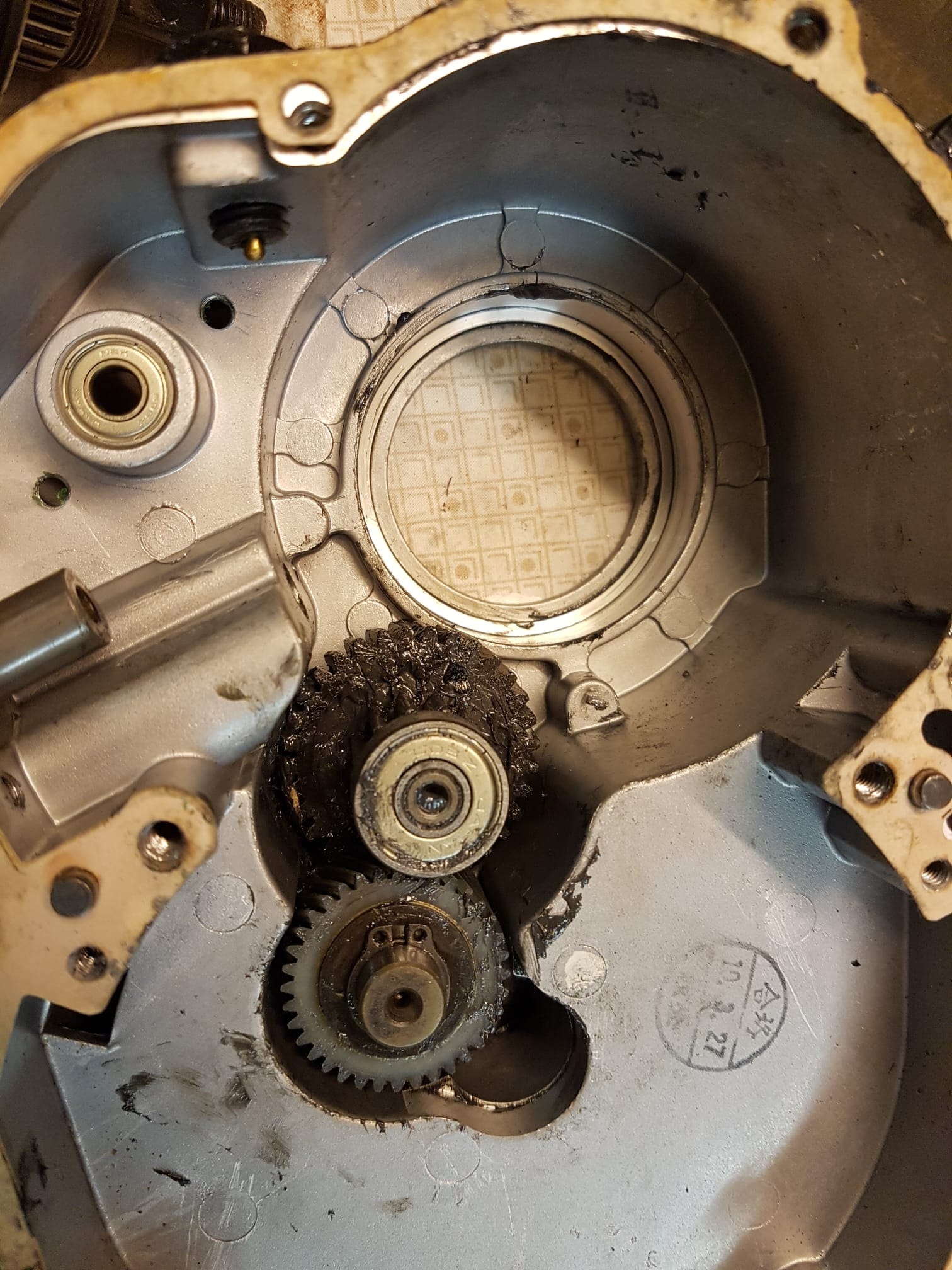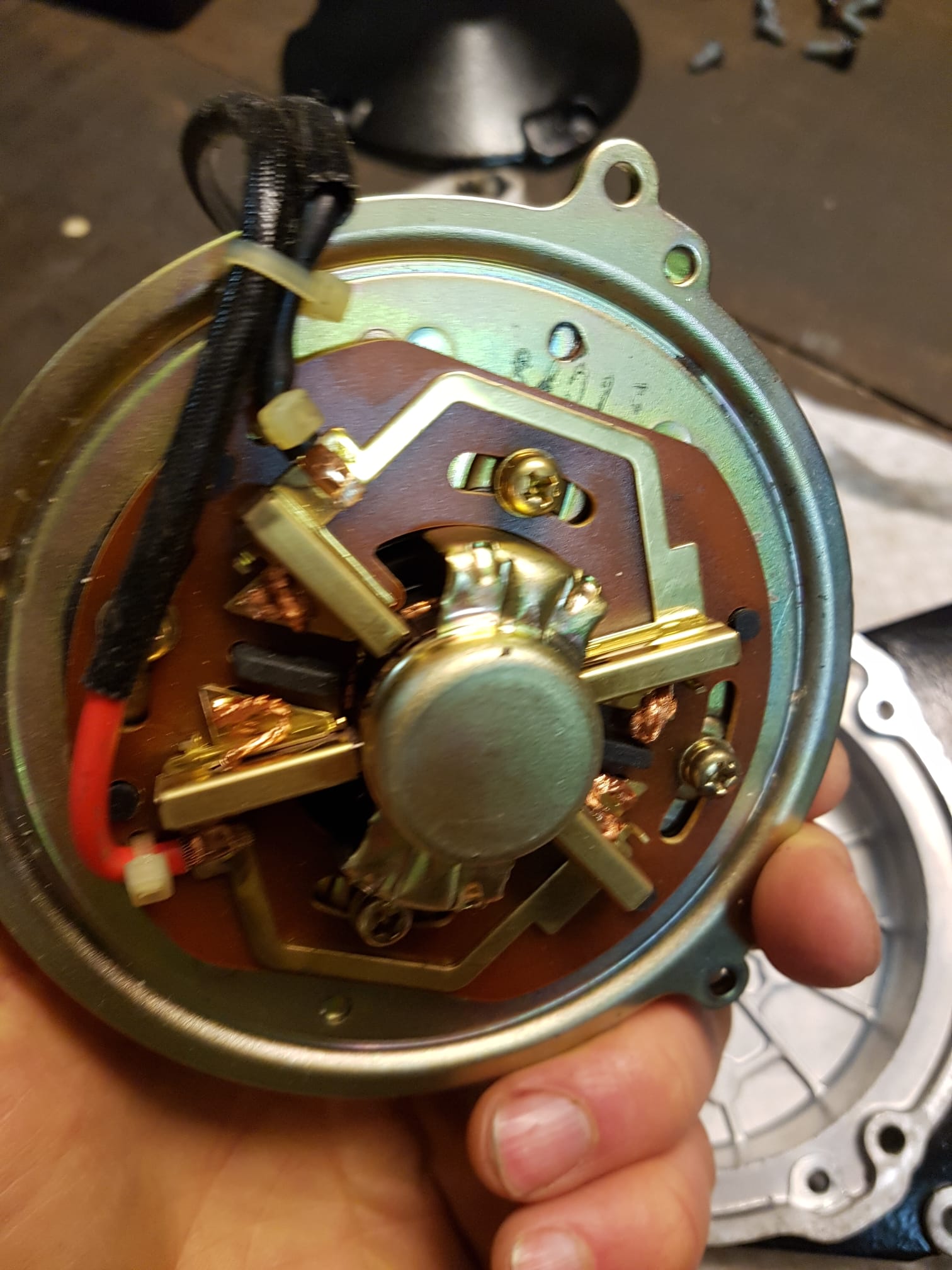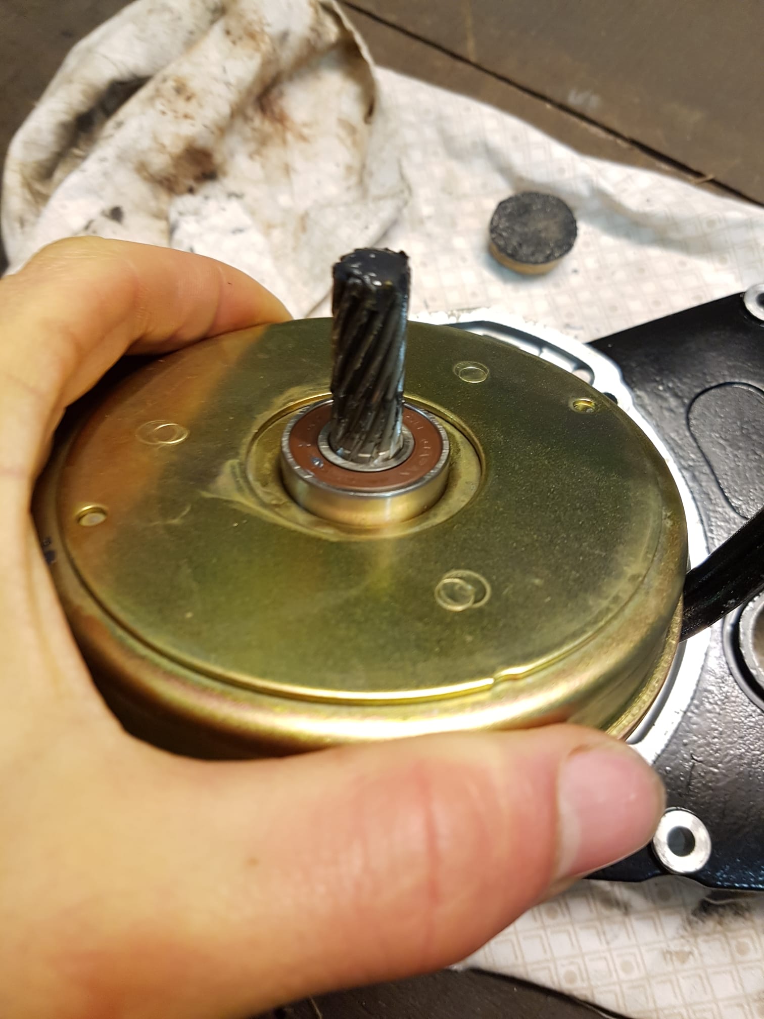 The first gear connected to the DC motor (most left in the picture above) is made of plastic, so could be prone to wear. The motor gear has a helical shape, to allow for a very small first gearwheel, as used in modern Bosch motors as well (explained here).