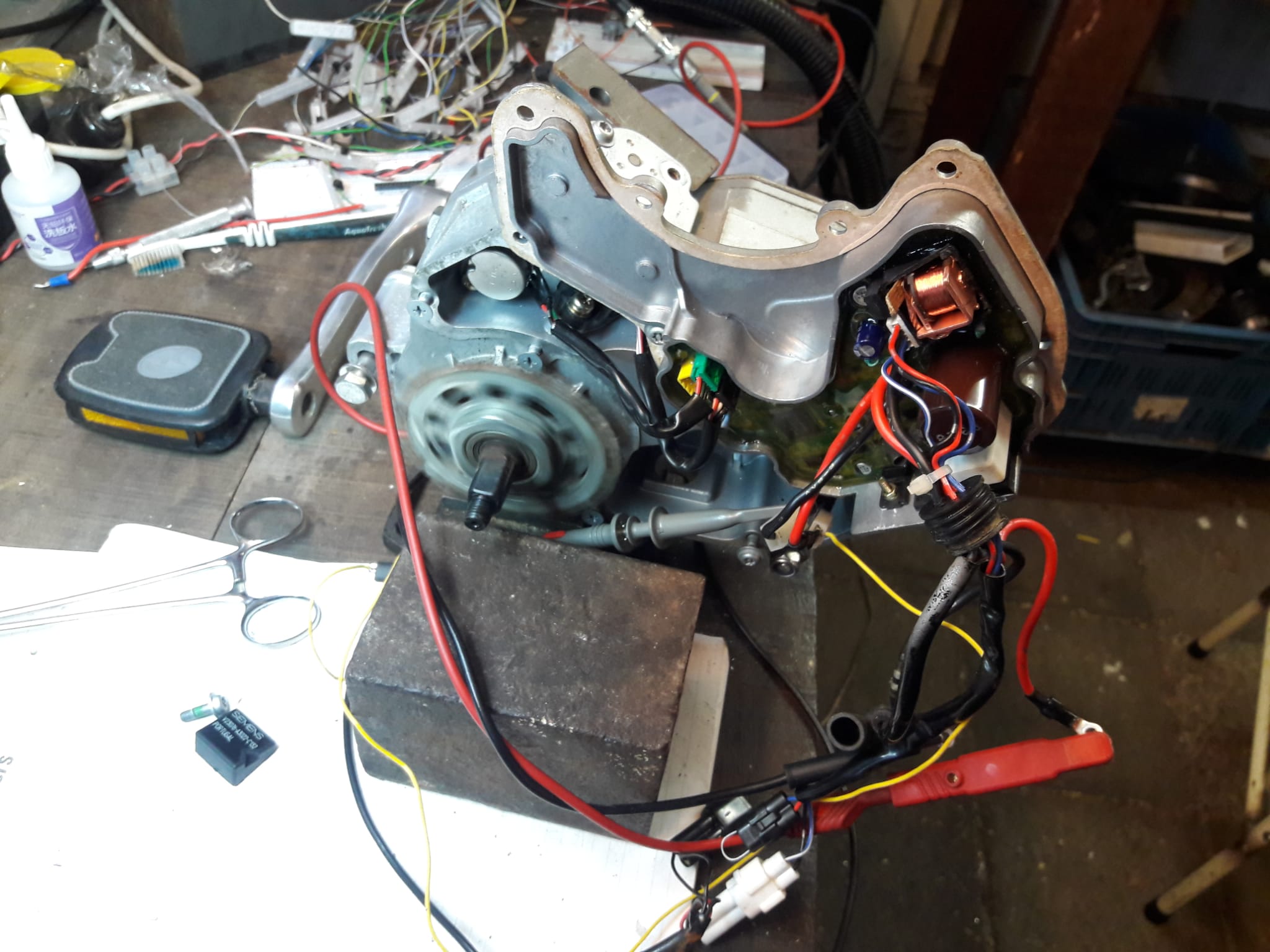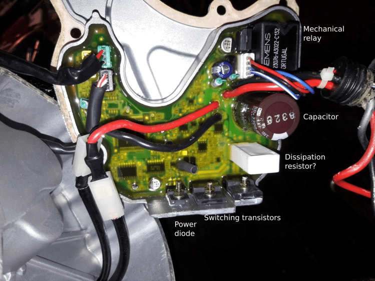 I have recently bought an old e-bike built by Batavus, the e-go (see here for a review in Dutch). The bike is equipped with a Panasonic mid-drive motor. The motor did not run, even with a power supply connected instead of the defect battery. I therefore decided to open up the casing and see if I can find faults in the PCB.